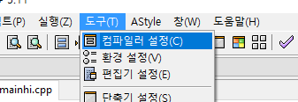 1. 프로그램 상단에 있는 툴 중 도구를 누르고 컴파일러 설정에 들어간다.