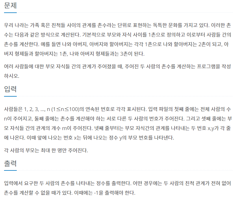 하지만 만약에 while 문 내에서 프로그램이 끝나지 않고 끝까지 가면 두 사람은 서로 연결되어있지 않은 것이니 마지막에 -1 출력하나 놔둔다.