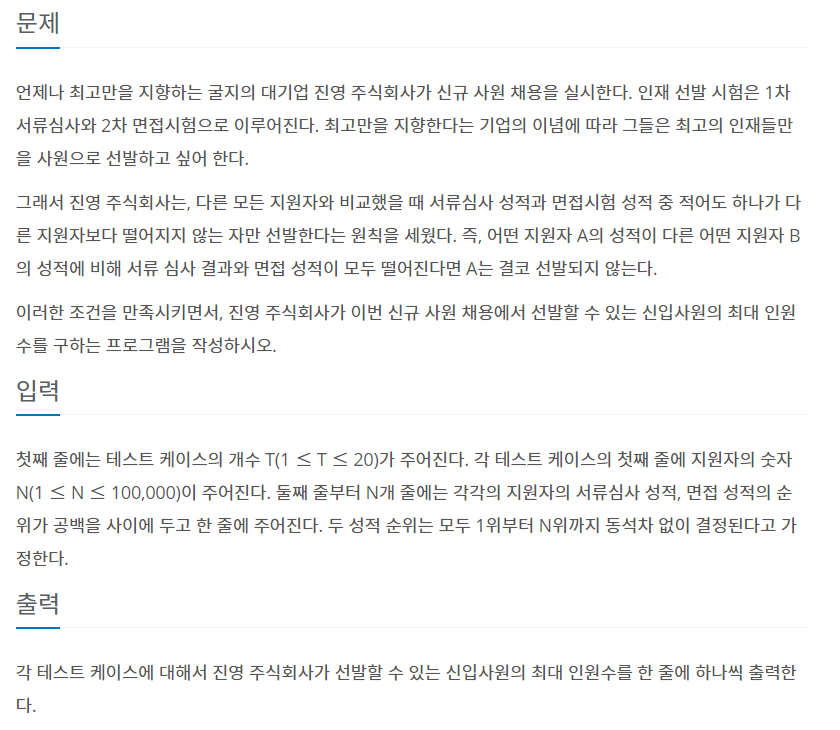 일단, 이 문제를 보고 헷갈릴 수 있는 데, "각각의 지원자의 서류심사 성적, 면접 성적의 순위"